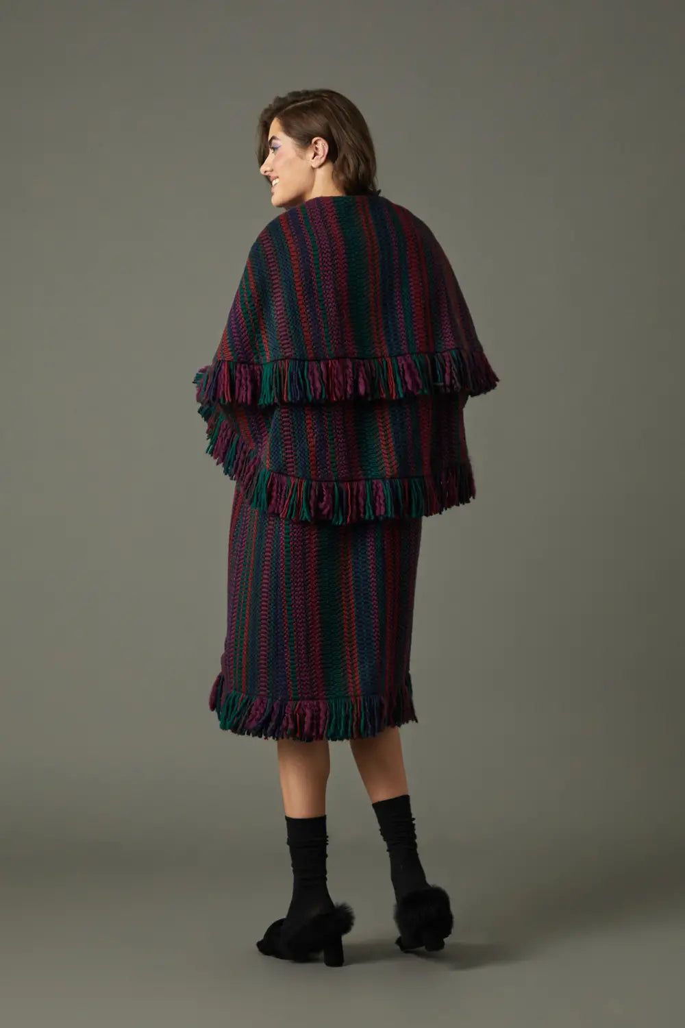 Abrigo capa de lana de colores con flecos