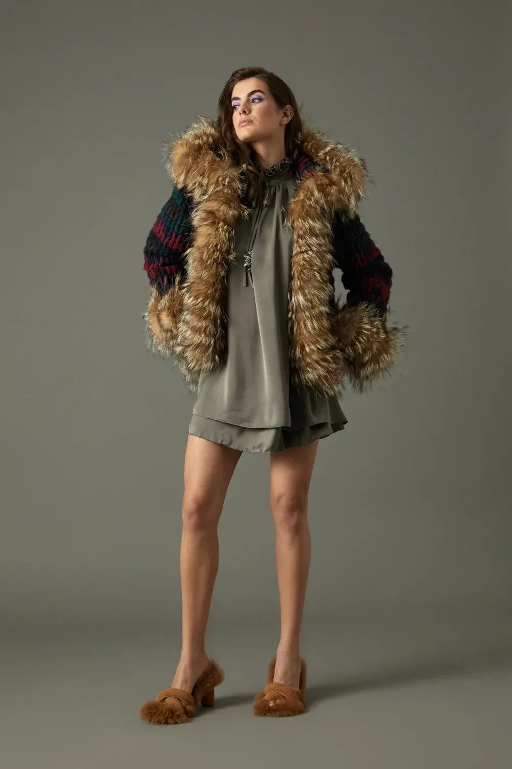 Abrigo corto evasé lanas de colores ribeteado en coyote