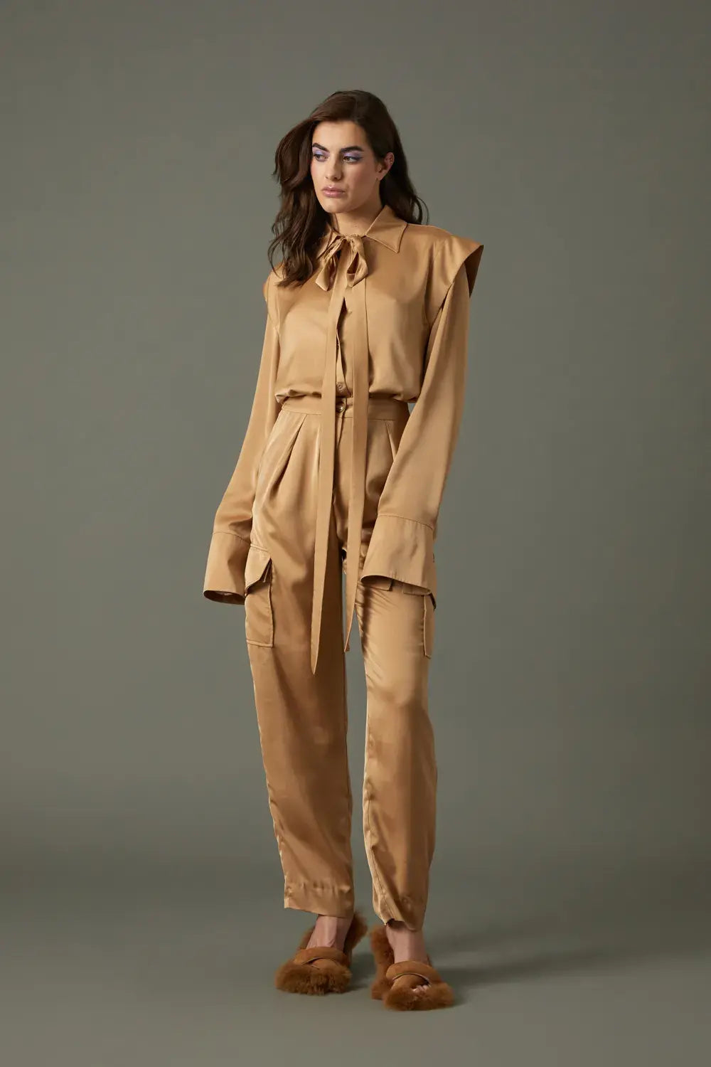 Blusa de manga larga con lazada y detalles en los hombros