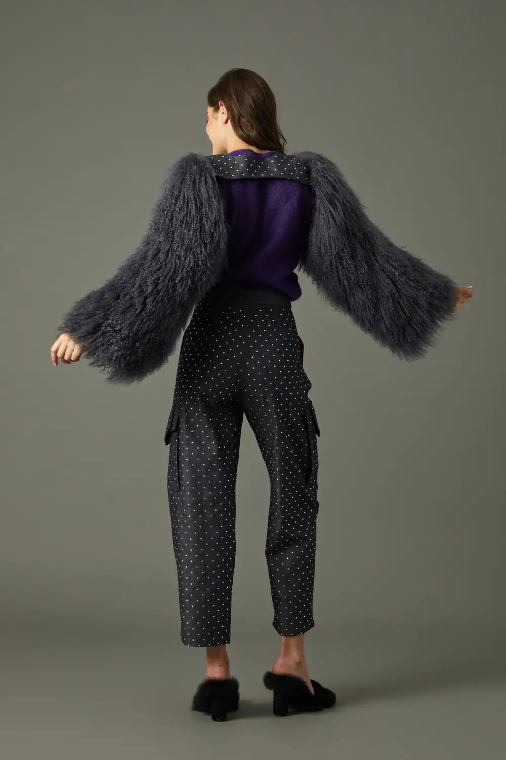 Pantalon vaquero cargo con bolsillos y apliques de brillos
