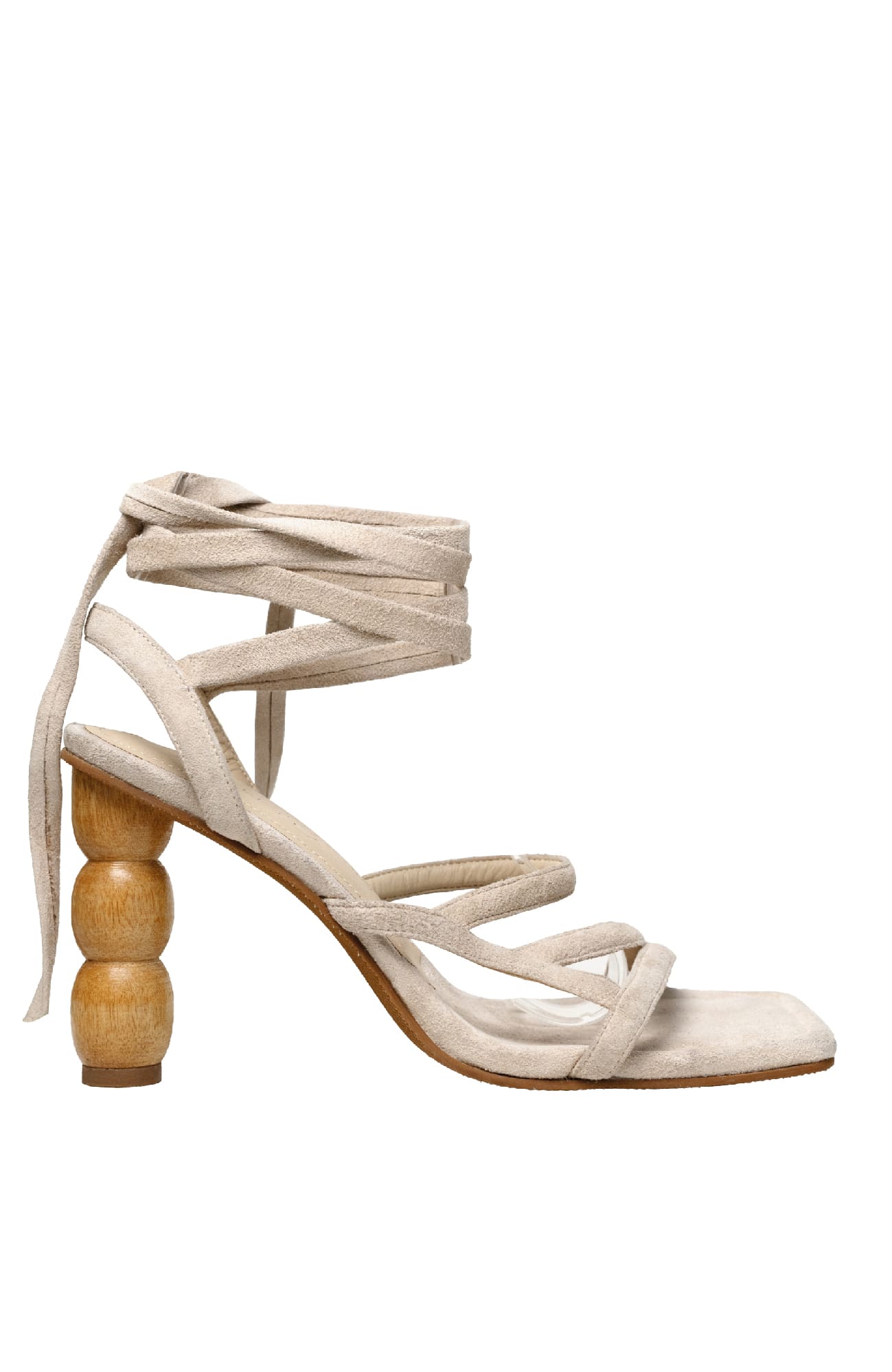 Colección diseñada junto a la marca Canella. Sandalias de tacón barnizado, confeccionadas en ante, con straps <p>